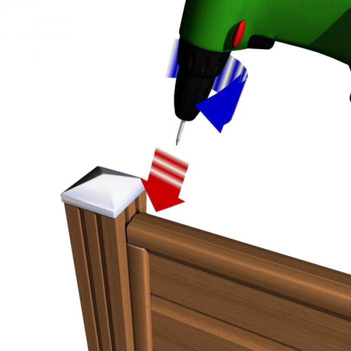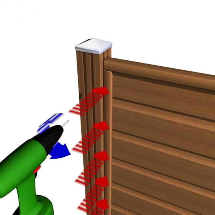 Nachdem die Pfosten mittels H-Ankern senkrecht montiert worden sind, werden die U-Leisten auf die Pfosten geschraubt. Alle Verschraubungen des Bangkirai Steckzaunsystem sollten vorgebohrt werden.
