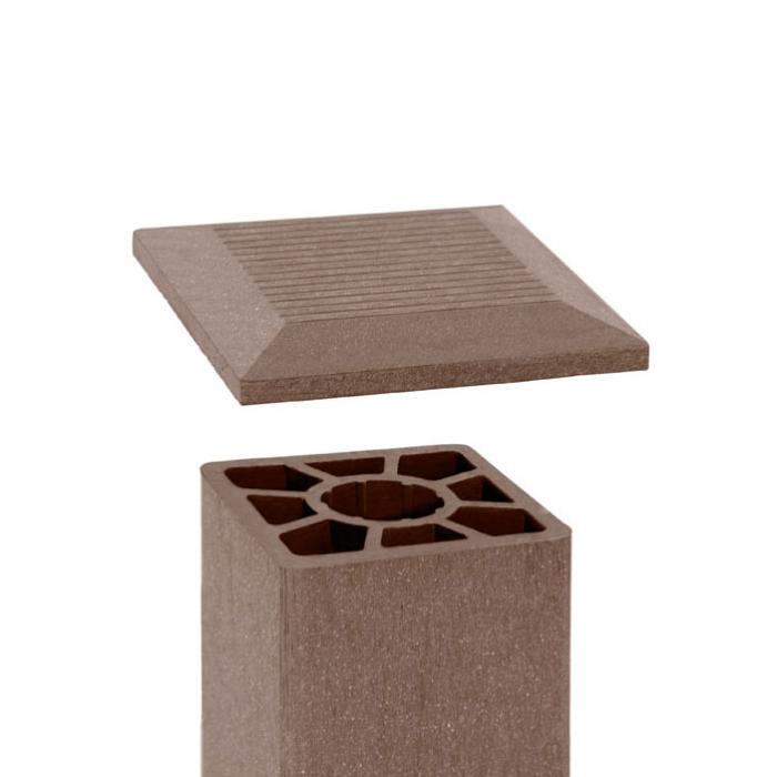 Bei den Pfosten dieser Zaunserie handelt es sich um Hohlprofile. Die gegen Aufpreis erhältliche Pfostenkappe schützt die Pfosten aus BPC vor eindringender Feuchtigkeit und Verschmutzung von oben. Der Pfosten ist zwingend auf den Schutz durch die Pfostenkappe angewiesen.