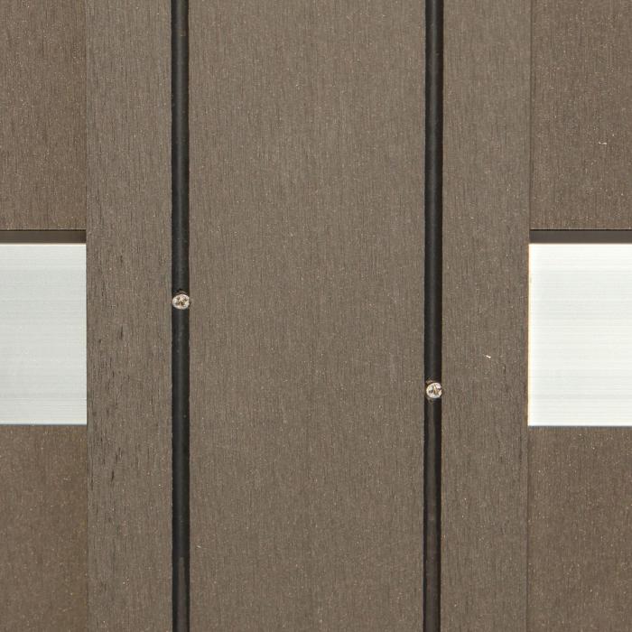 Bei den Zaunbrettern aus WPC handelt es sich um Hohlprofile. Die Sichtseite der Bretter weist zwei Ziernuten auf.