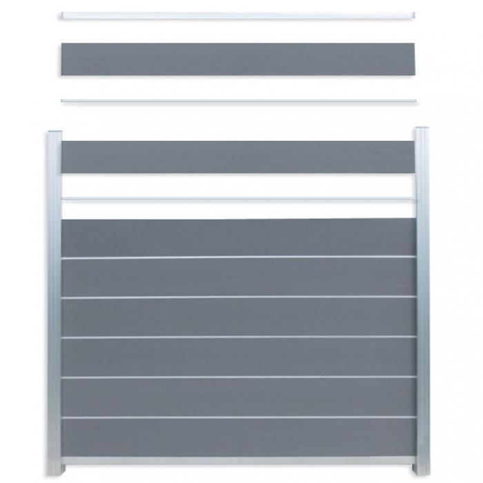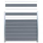 Die Zaunfeldsets sind für Zaunfelder in verschiedenen Höhen erhältlich. Jedes Zaunfeldset besteht aus Füllungsprofilen aus WPC und der entsprechenden Anzahl aus Zwischen- und Abschlussprofilen aus Aluminium. Je nach gewähltem Set sind die Profile entweder silber- oder anthrazitfarben. Die Pfosten gehören nicht zum Lieferumfang der Zaunfeldsets.