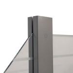 Der Zaunpfosten besteht aus zwei miteinander verschraubten Halbschalen. Dieser Klemmpfosten kann sowohl die 8mm starken Glaselemente, als auch die 20mm starken Profile aus der Zaunreihe System-WPC aufnehmen.