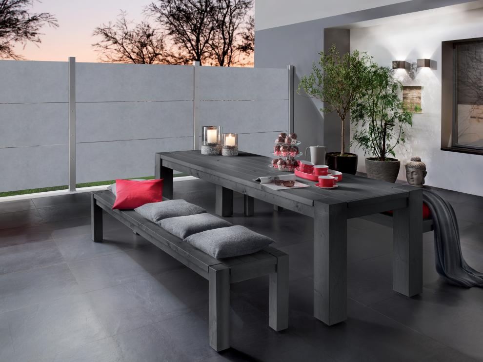 Hergestelt werden die Sichtschutzelemente der Serie System Board Keramik XL aus den Grundmaterialien Feldspat, Ton und Quarz. Zudem werden weitere natürliche Zuschlagstoffe verwendet, um die unterschiedlichen Designs zu erschaffen. So sind Farbunterschiede durch die natürlichen Grundstoffe unvermeidbar und charakterisieren die Einmaligkeit der Zaunelemente aus Keramik.