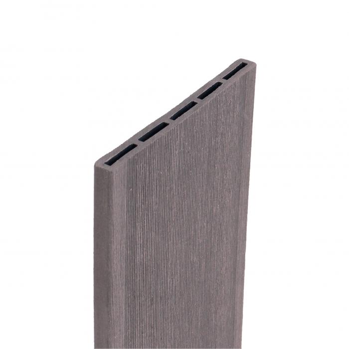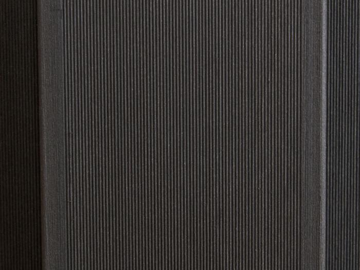 Die Zaunleisten der Zaunserie Jumbo aus WPC sind auf der Sichtseite mit einer feinen Riffelung versehen. Die Optik dieser Profilierung orientiert sich an dem Aussehen der Zaunlamellen von Sichtschutzelementen aus Bangkirai und anderen hochwertigen Harthölzern.