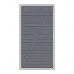 Die Tore für die Zaunserie System WPC sind mit einem stabilen, silber- oder anthrazitfarbenen Metallrahmen ausgestattet. Zur Aussteifung des Tores ist eine WPC Lamelle quer über die Füllung des Tores geschraubt.