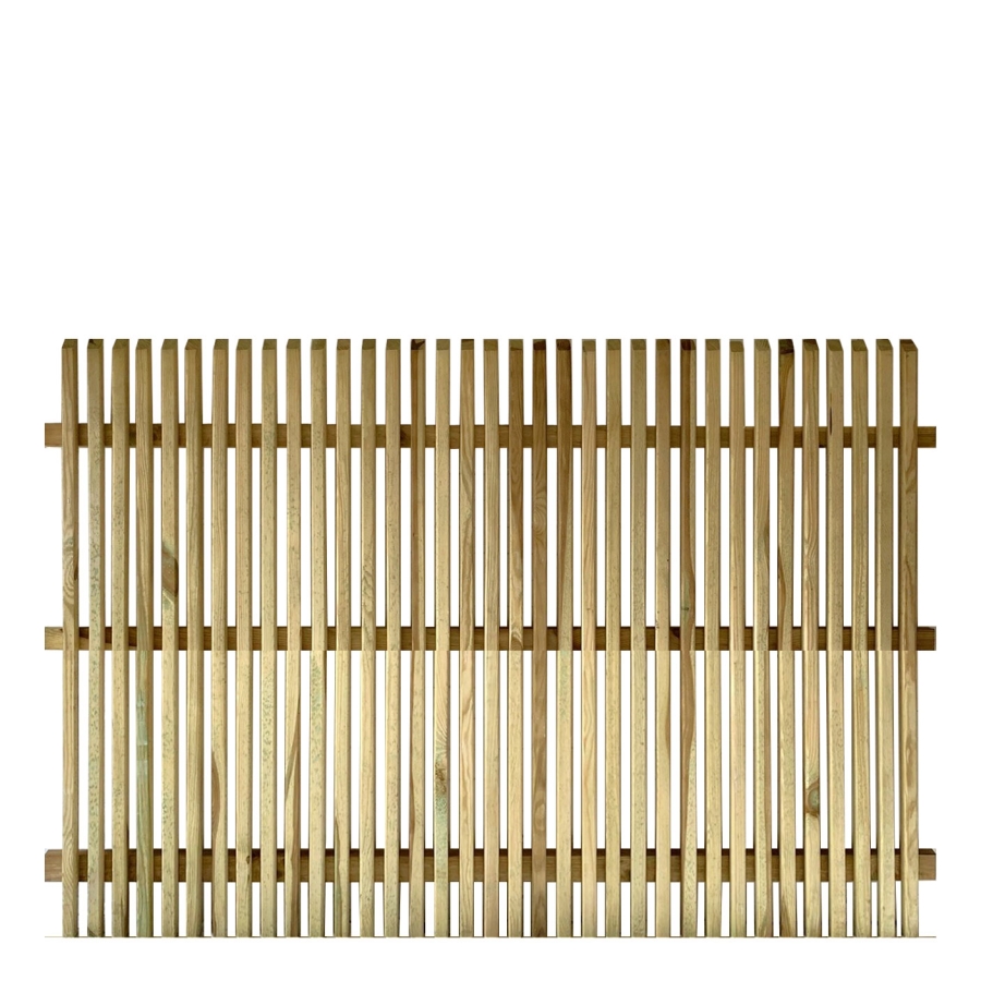 Der Sichtschutzzaun besteht aus hochwertigem, druckimprägniertem Nadelholz, das besonders wetterresistent und langlebig ist. Die 45 gehobelten und gefasten Zaunlatten sind vertikal angeordnet und verleihen dem Zaun ein modernes und gepflegtes Aussehen.