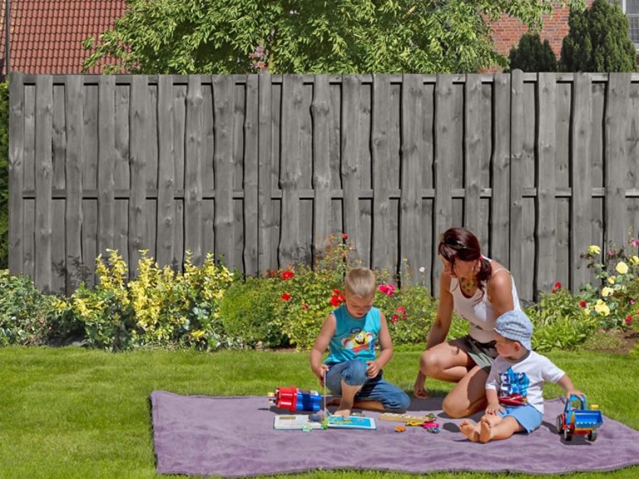 Stilvoller Natura Bohlen-Zzaun aus grau imprägnierter Kiefer: Optische Eleganz und praktischer Nutzen