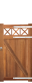 Die Hartholzpfosten werden bei diesem Torsystem direkt und damit ohne Verwendung von Eisenankern einbetoniert. Die Torflügel werden im geöffneten und geschlossenen Zustand durch Stützpfosten mitgetragen. Diese sollten ebenfalls in Beton gesetzt werden.